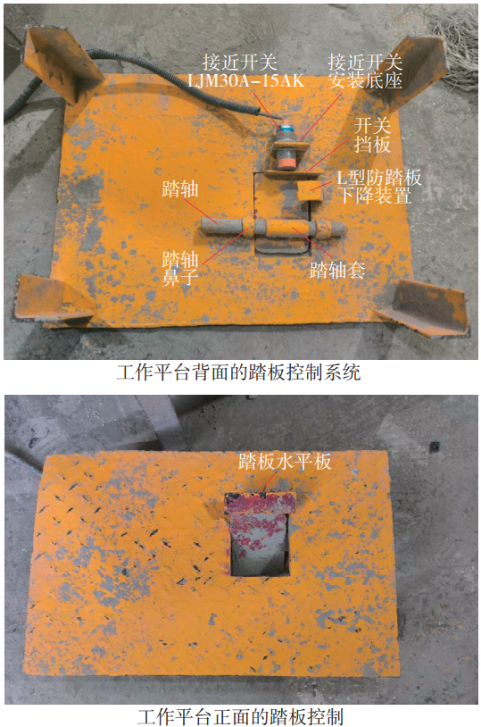 踏板系统由踏板、踏轴、接近开关、接近开关挡板、防踏板下降装置等组成,具体见图2。