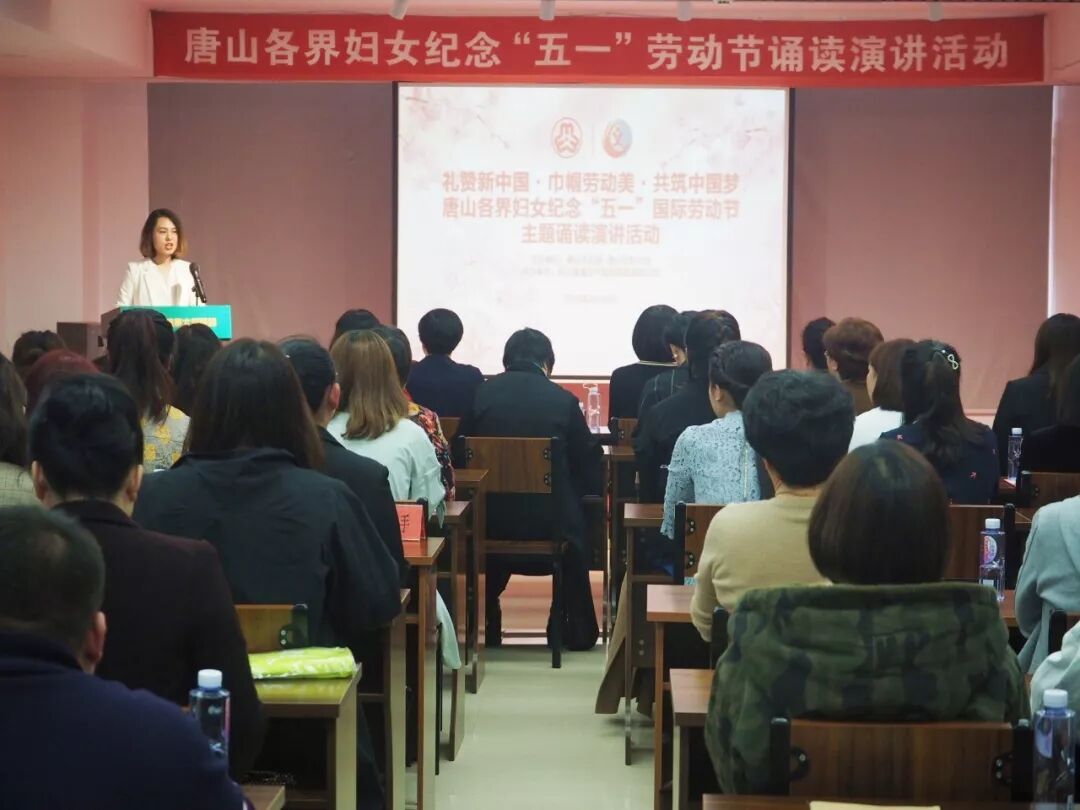 为大力弘扬“不忘初心、爱岗敬业、创先争优”的时代新风,进一步激励广大妇女踊跃争当大国工匠、岗位标兵,以实际行动建功新时代,礼赞新中国,感恩伟大的祖国和伟大的中国共产党,以优异成绩庆祝五一劳动节,迎接新中国成立70周年,4月29日,唐山市妇联、唐山市女企协联合举办“礼赞新中国·巾帼劳动美·共筑中国梦”主题诵读、演讲活动。市妇联主席张进霜,唐山市女企业家协会党支部书记王立新、常务副会长张玉玲、协会副会长任亚利、杨静霞出席,全市各界妇女代表百余人参加活动。